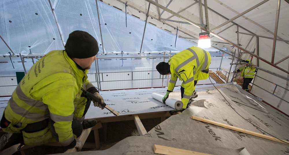 Lisäksi olemme hioneet remonttiprosessin sellaiseksi, että koko remontin ajan rakennuksessa voidaan asua riippumatta siitä mihin vuodenaikaan remontti tehdään. Mehän suoritamme kattoremontteja ympäri vuoden, myös talvisesongin aikaan.