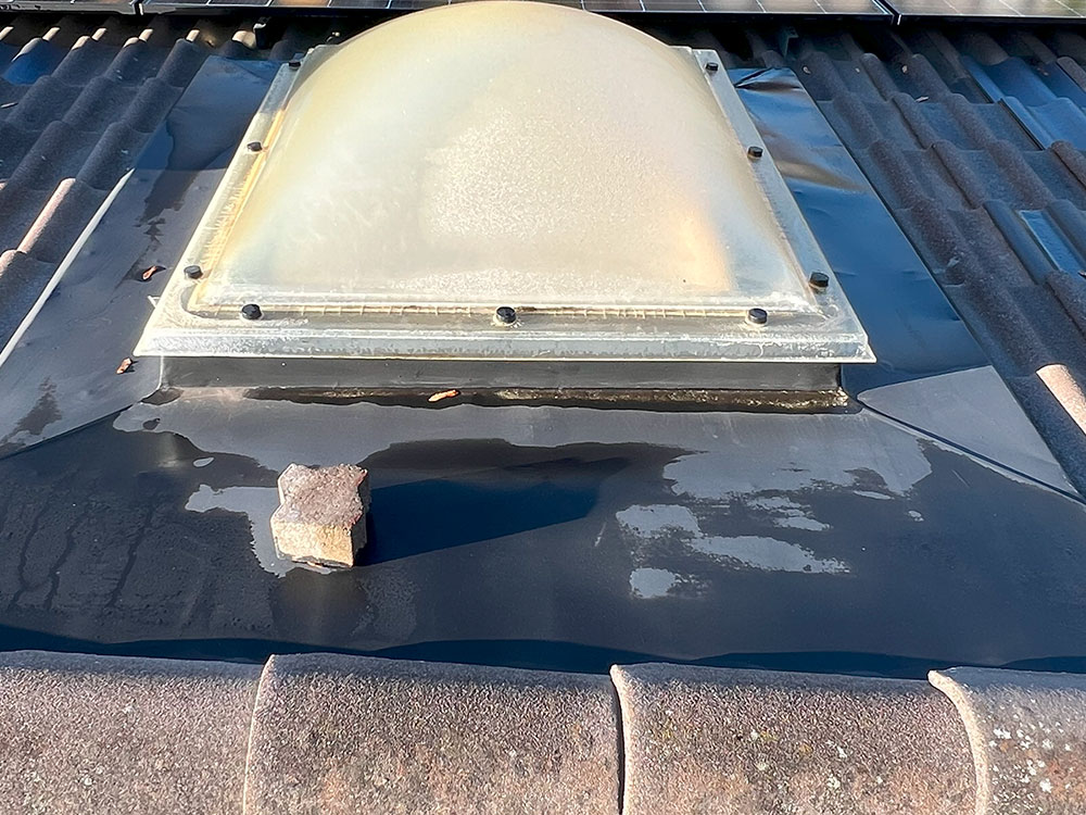 - Bitumikatolla oleva kattovalokupu vuotaa