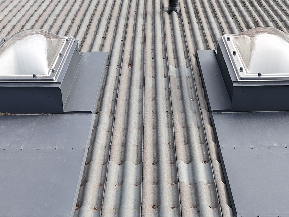 Jalustaa ei saa jättää näkyviin. Asennustiivistysten jälkeen rakennuspeltiseppämme asentaa mitoitetun peltisarjan. Urakka päättyy lopputarkastukseen ja loppusiivoukseen, ja Keraplast kattovalokuvun uusiminen paritalon katolla on valmis!